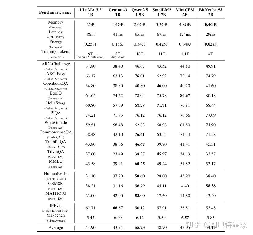 BitNet b1.58 2B4T,一款拥有20亿参数(这些“参数”可视为“权重”的另一种表述)的开创性BitNet模型,其在浩瀚的数据海洋中遨游——一个包含了4万亿个token的数据集,这一数字大致相当于将3300万册书籍的内容融入其中。经过这番洗礼,BitNet b1.58 2B4T在语言理解、数学逻辑、编程技巧及对话交互等多个维度接受了严苛的基准测试考验,其性能与同类规模模型旗鼓相当,并且在效率上实现了质的飞跃。 值得注意的是,BitNet b1.58 2B4T并未能在所有对决中全面碾压其他20亿参数的竞争对手,但其展现的实力确实令人瞩目。研究团队的测试揭示,该模型在ARC-Challenge、OpenbookQA、BoolQ、GSM8K(专注于小学难度数学问题的题库)以及PIQA(旨在衡量物理常识推理能力的测试)等一系列高标准基准测试中,成功超越了Meta的Llama 3.2 1B、谷歌的Gemma 3 1B以及阿里巴巴的Qwen 2.5 1.5B,展现出了非凡的竞争力。