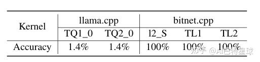 图:llama.cpp 与 bitnet.cpp 之间的推理准确率对比